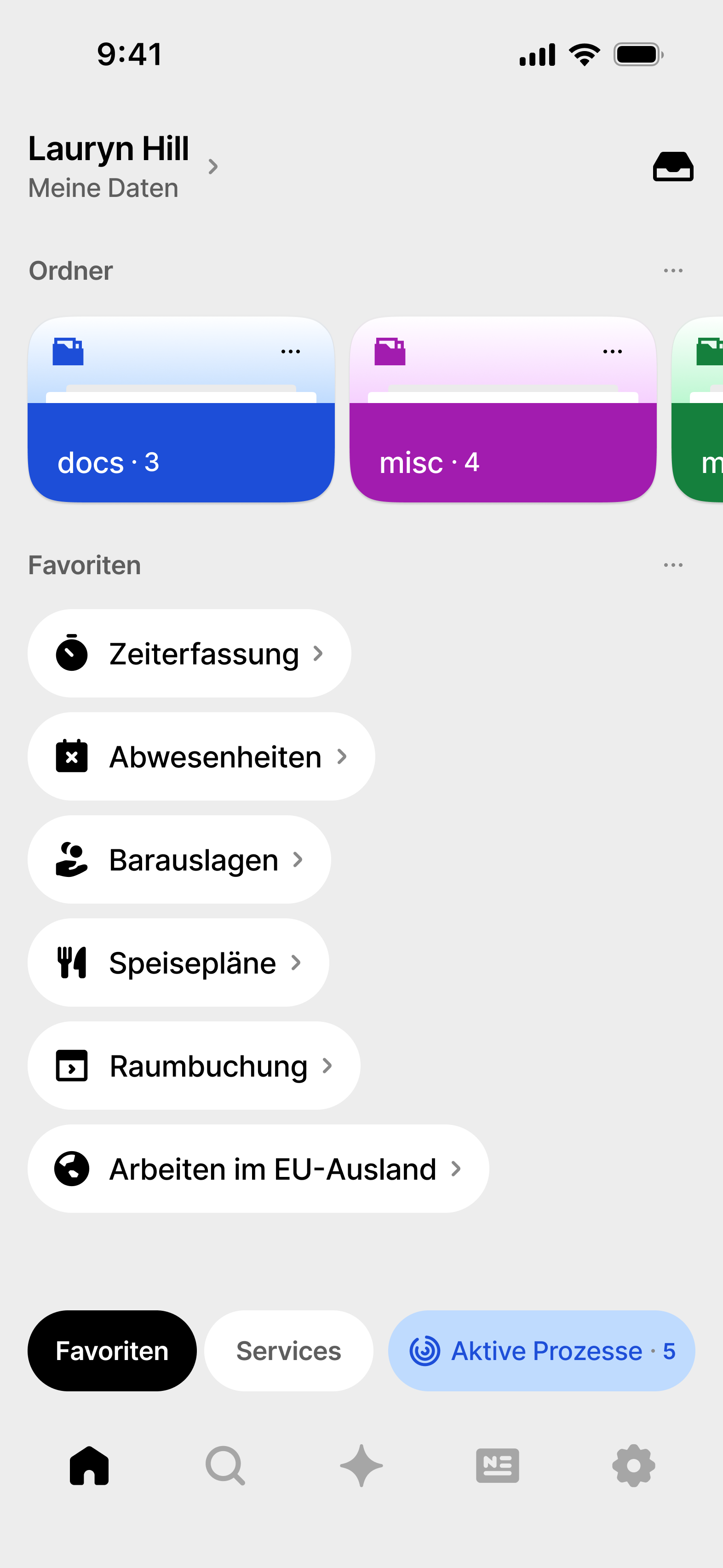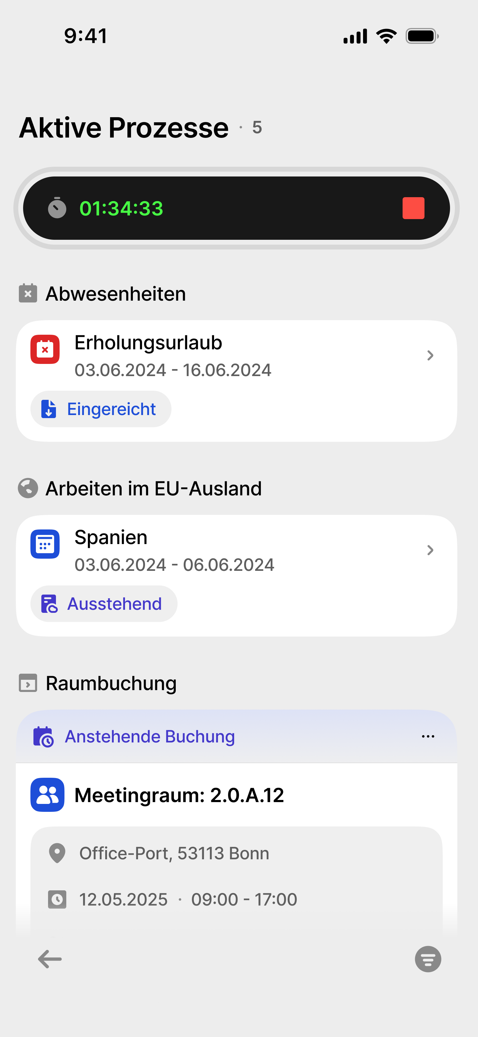 After: Real-time status tracking widget "Aktive Prozesse" on homepage Rationale:
