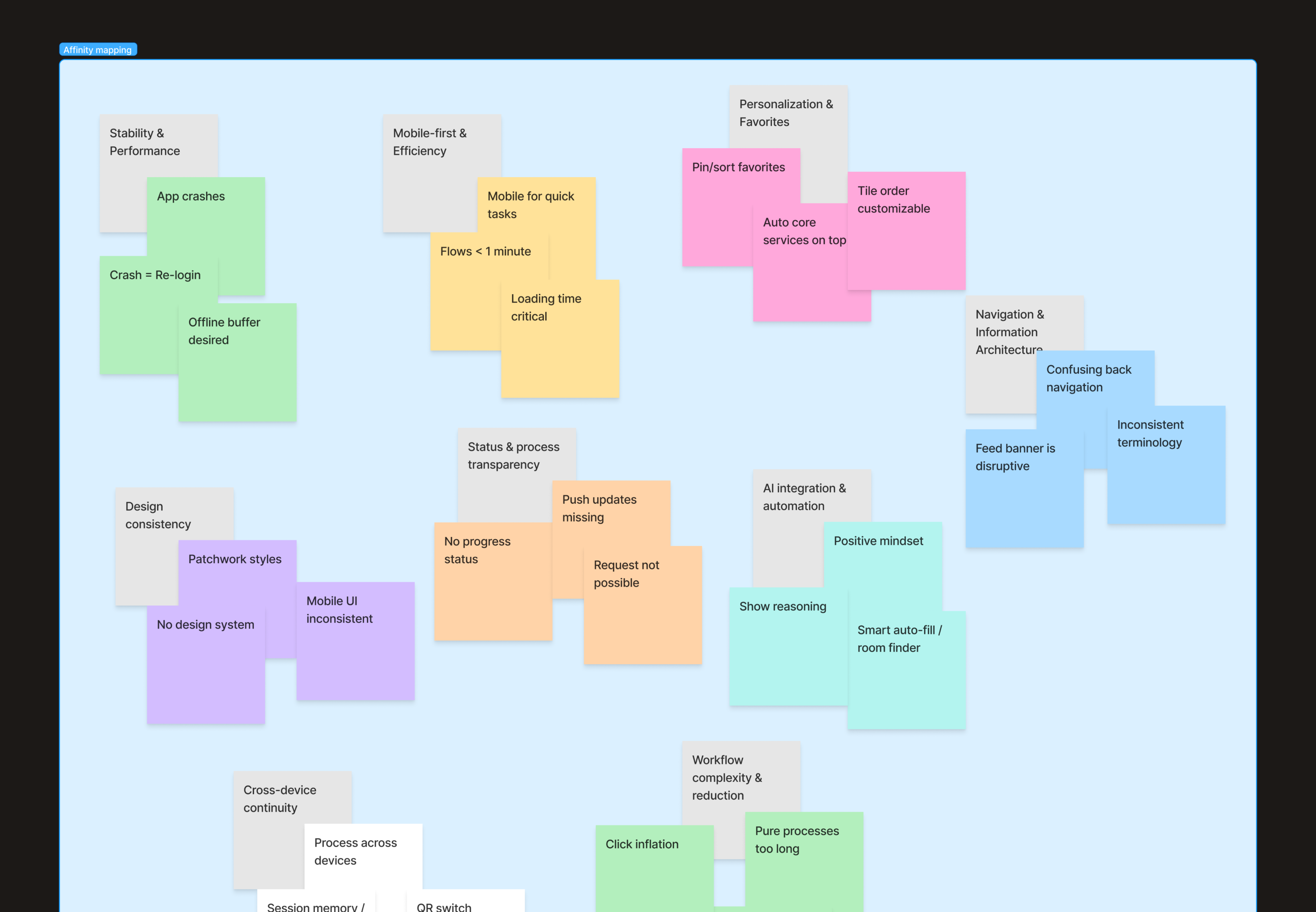 The project reinforced that clarity beats complexity. Employees didn’t want more features; they wanted faster, cleaner ways to complete recurring tasks. It also sharpened my ability to synthesize messy research into simple, actionable insights that could move both user satisfaction and business metrics.