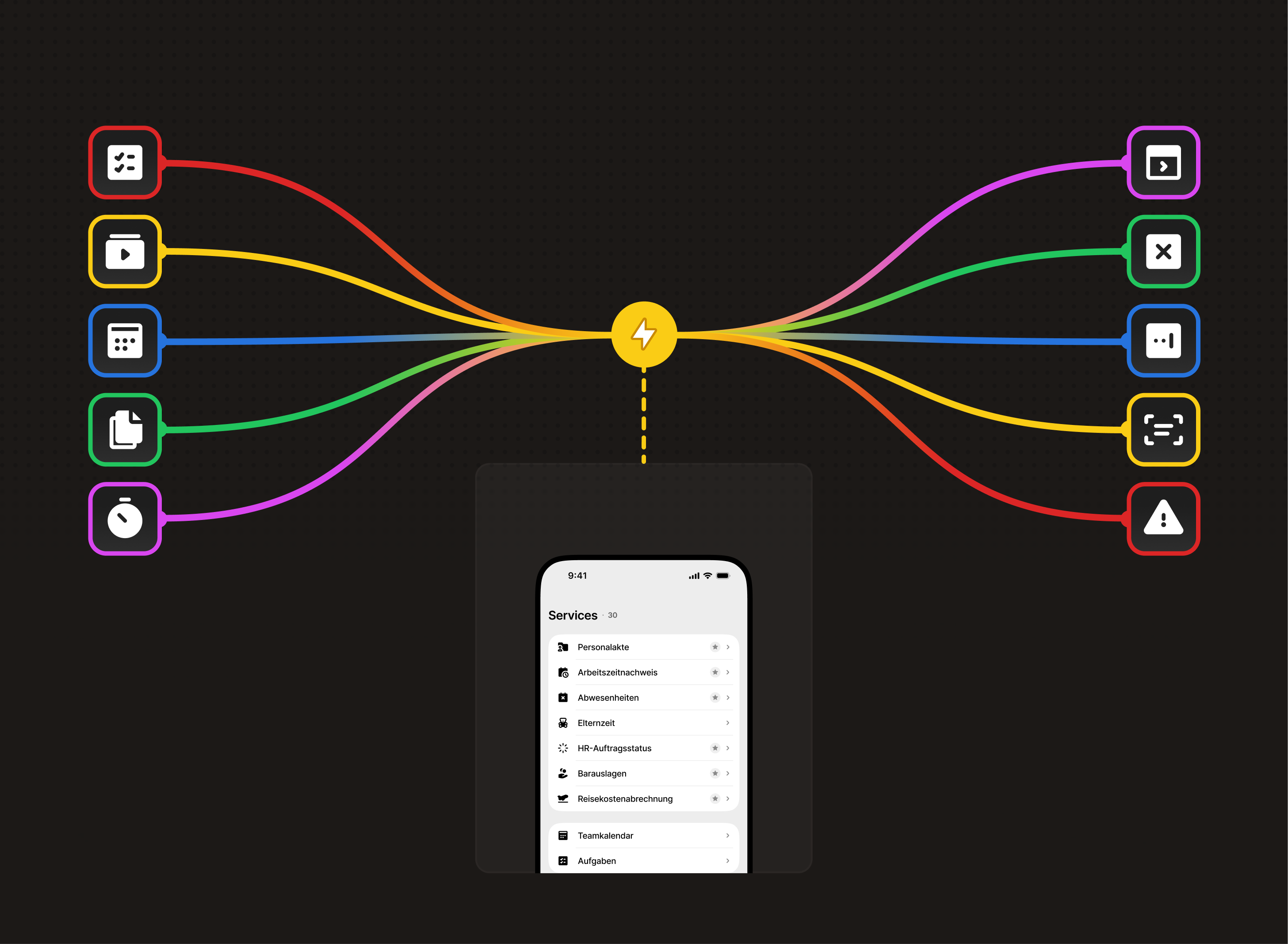 Eliminated the dual frustration of (a) manual analog submission processes for all workplace tasks and (b) fragmented tool landscape across multiple interfaces and systems, creating a unified digital workspace that consolidates 31 essential HR functions into one contextually-adaptive mobile platform.